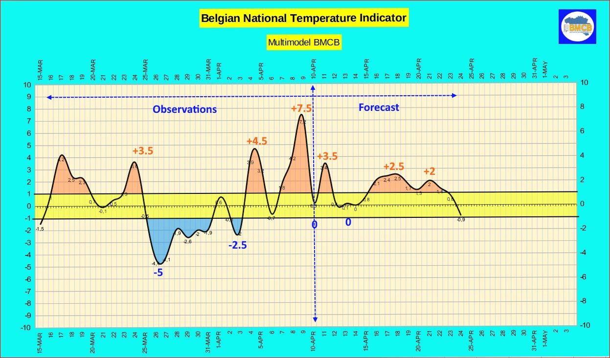 Dès les jours suivants, et au moins jusqu'au 23 avril, l'indicateur thermique devrait osciller entre 0 et +3, traduisant un retour à des conditions plus modérées.